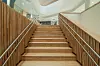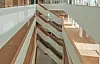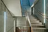 Det er to vertikale kommunikasjonskjerner i bygget med heis og trapper. De er plassert på hver side av atriet og all kommunika-