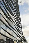 – Bygget har en kompakt bygningskropp uten rette vinkler. Bærende konstruksjon er i stål og hulldekker, med noen stabiliserende trappesjakter i betong. Taket er en kombinasjon av isolerte og tekkede hulldekker og lett-tak. Fasadene består i stor grad av glass, med noen betongelementer, sier Kari Saarisilta.