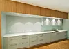 materiale med trefinér og skal representere treverket fra den tradisjonelle bergensbebyggelsen. Det ytre laget legger seg som et skall av glass som bølger seg rundt bygget. Det reflekterer og endrer seg etter væreskiftene og årstidene i Bergen, sier Rossow.
