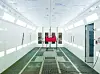Det er fliser på gulvet i salgshallen, og glatt betonggulv med belegg av epoksy i karosseri- og lakkverkstedene. Mellom verksted og salg er det dels glass og dels sandwich-