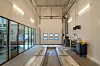 elementer med lyddempende gips på salgssiden. I verkstedene er det lyddempende systemhimlinger. I salgshallen er det åpne himlinger med lyddempende flåter. Det er 200 millimeter isolasjon i veggene.