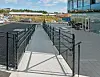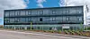 Andre og tredje etasje har ifølge Rakner en kontrastfull utførelse i sort silketrykket gradient. Dette gir en mer skjermet fasade for kontorlokalene.