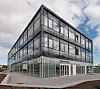 Bygget har rektangulær form. Andre og tredje etasje har et utbygg mot øst. Bærende konstruksjon er i stålsøyler, ståldragere og hulldekker. Et trappehus og et kombinert trappe- og heishus er i plasstøpt betong. Taket består av tekkede og isolerte lettakselementer. Alle fasadene er av glass med dekor.
