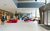 Det åpne og utadvendte «mellomrommet» i glass inneholder eksponerte publikumsfunksjoner som vestibyle/kulturtorg/pausearealer til saler, bibliotek og badeanleggets hovedvolum. Den lette «skyen» i metallfasade speiler skiftende vær og lys. Denne inneholder storsal, kulturskole, øverom, administrasjon, samt utleieareal.