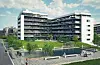 Hvite volumer kontrastert med luftet pussfasade med mørke grå vindusfelt i fasadene gir en særegen karakter til stedet. Arkitekten understreker at kontrasten mellom parken, med Hovinbekken og beplantning, og den omliggende kvartals-