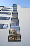 Prosjektet har hele fire trappe- og heishus. Vi bestilte derfor prefabrikkerte betongvegger på alle sjakter for å gjøre hver etasje raskere ferdig i råbyggfasen. Det var ikke økonomisk lønnsomt. Men tidsmessig en klar fordel, vi ville ellers ha brukt to dager mer per etasje, slår Gilhus fast.