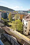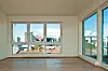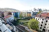 De øverste leilighetene, spesielt en av endeleilighetene i den inntrukne åttende etasjen, har tre terrasser på til sammen over 80 kvadratmeter, med sol hele dagen, ingen gjenboere i samme høyde og med panoramautsikt over byen.