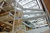 dekke som kunne ta store spenn, uten å måtte gå inn med for mange nye bæresøyler. Dette var med på å begrense egenvekten av dekkene, og er også nyttig med tanke på eksisterende konstruksjoner. Mellom de forskjellige fløyene er det nå etablert sju nye gangbroer for å knytte det store arealet mer sammen, slik at leietakerne slipper å gå rundt hele bygget for å komme over til neste fløy, forklarer han. Eksisterende stabilitet er også en utfordring i slike rehabiliteringsprosjekt.