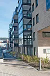 balkongløsninger uten søyler, men med store utkraginger mot sørvest. Søyler her ville endret uttrykket ganske radikalt. I tillegg er det lagt inn ekstra kvaliteter i forbindelse med valg av type tegl og glassrekkverk balkongene. Det er alltid et finstemt samspill mellom det å bygge rasjonelt, og det å få frem et godt estetisk uttrykk, sier Klungland.