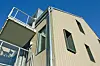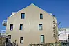 Hun påpeker at byggene er tilpasset det bevaringsverdige miljøet med saltak, hvor møneretning og fasadeliv ligger parallelt med gaten. Materialvalget følger områdets typiske treuttrykk, men får samtidig en referanse til samtiden med lyst, stående panel og sinktak. Balkonger med glassrekkverk, mørke vindusrammer og enkelte, uthevde vinduer bidrar til å skape kontrast og spill i fasaden.