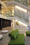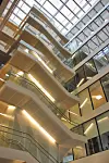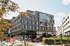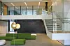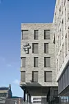 Forøvrig preges også fasaden av glassvegger i de nederste etasjene.