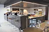 Det store kjøkkenet som tilhører felleskantinen i 1. etasje ble omprosjektert sammen med firmaet som ble valgt til å drifte kantinen. Dette medførte betydelige endringer, som blant annet resulterte i et påkostet kjøkken med høyt utstyrsnivå og benker i heltstøpt Corian.