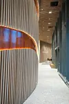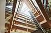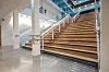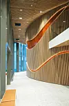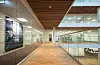– Alt ble rensket ut. Vi måtte åpne opp og etablere noen felles steder å møtes og klare og oversiktlige kommunikasjonsarealer å bevege seg i. Vi bandt ikke bare de to bygningskroppene sammen, men ga samtidig det 16 meter brede mellombygget en funksjon. Det er ikke bare en gangbro. Her er det lagt kopirom, møterom og sosiale soner for hver etasje, forteller prosjektansvarlig hos Pilot Arkitekter, Stein Arne Andreassen.