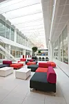 Innovasjonsparken er bygget opp rundt fellesarealene som er satt sammen slik at de danner et enormt sammenhengende rom, der flerbrukshallen er et viktig bindeledd mellom kantine og bibliotek/mediatek. De to sistnevnte utgjør to like store innvendige atrier, hver med 220 kvm overlys.
