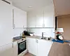 Tilgangen til byhusleilighetene skjer via et portrom. Man kommer inn i leiligheten, går opp en etasje og kommer inn i stue med utgang til egen hage. I etasjen over er det soverom og med egne takterrasser ut fra soverommet. I planet over er det delvis en felles takterrasse for de som bor i boligtårn A og B, men også private hager for de som bor i byhusleilighetene.
