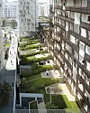 Leilighetene i Tårn A og Tårn B har i tillegg til fellesarealer på taket av den treetasjes lamellen i stripe A, tilgang til private takterrasser i respektive tårn. Stripe C er en ikke-bebygget tomtestripe som gir luft gjennom hele kvartalet, mens stripe D får det tredje tårnet med en utkraging fra niende etasje og oppover. Stripe E er et gangareal / uteområde, og stripe F avslutter altså kvartal B13 med det trekantete DEG42.