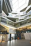 Taket i den nye inntrukne åttende etasjen, har en komplisert geometrisk form og fikk i prosjektet tilnavnet diamanten. Taket over atriet her bæres av to etasjehøyt fagverk med et Foiltec-tak.