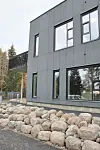 Fasaden veksler mellom ospe- og platekledning, og er med på å gjøre rusleturen rundt bygget mer interessant for beboerne.