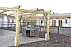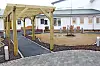 – En toleranse på pluss/minus tre millimeter på veggene og bærende drager er uten avvik for at takelementer skulle passe. Veggene ble laget ferdige på plassen som skjelett og utvendig GU og heist på plass. Ringsaker Takelementer leverte og monterte taket effektivt i fire omganger på fire dager. Bygget har to respektive en etasje, men det store taket og den korte byggetiden medførte mange angrepspunkter, påpeker Abrahamson.