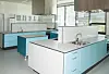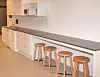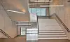 Det er systemhimlinger i klasserom og korridorer og i stor grad åpne himlinger i fellesareal.