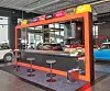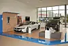 – Hvert brand har med seg sitt eget språk både formmessig og fargemessig. Kjernen av den BMW-branden er en interne to-felts veibane som alle utstilte biler orienterer seg på. Bygget er konstruert av mange lange parallelle hvite veggskiver og glasspartier som forsterker veibanens retning og lar bilene fremstår som en slags kunstgalleri. Takformen komplettere disse retningsgivende elementer og lar dynamikken fortsetter ute, der bilene finner veien videre, sier Murdock.