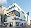 Bygningens ulike program og funksjoner er artikulert i volumoppbygning og materialbruk på en måte som knytter den til omgivelsenes skala uten å kamuflere bygningens egentlige størrelse og betydning. På gateplan åpner bygget seg opp med sammenhengende forretningsfasader mot fortauet.
