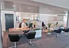 Det er flis på gulvet i de fleste rom. I kontorene er det tepper. Innvendig er det mange glassvegger, som gir lys og oversikt. Det er åpen himling i publikumsareal og systemhimlinger i verksted.