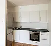 Det er skjørt over kjøkkeninnredning for å unngå produksjon av hybelkaniner. Utenfor badene er det betjeningspanel for regulering av temperatur og ventilasjon i leilighetene.