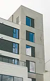 – Fasadenes klimavegg er kledd med sementbaserte plater i etasjeskillene og en trekledning i feltene mellom vinduer som skaper lokal tilhørighet i materialvalg, farge og skala, sier Sagland.