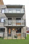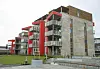 Utvendig har de videreført materialbruken fra naboprosjektet Vestsiden Brygge. Mest tegl, med innslag av tre og fasadeplater. De røde fasadeplatene er forresten med på å gi byggene et særpreg. Mens trebruken er mest tydelig i toppleilighetene i femte etasje, som bokstavelig talt er bygget på taket.