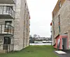 Med tanke på forhistorien til tomta er det naturlig at både stein og brygger har en sentral plass utomhus, et uteområde som fremstår som vellykket. Ut i elva har JM satt opp flere brygger, og til sammen kommer det 35 båtplasser i prosjektet. Mellom trinn en og to er det bygget opp et lite steinamfi med en lekeplass, og på sørsiden har man bygget en flott steintrapp opp mot Moldhaugen.