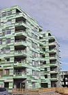 – Dette er en kostbar fasade som ikke gjør at vi får noe mer betalt for leilighetene, men det vil komme kjøperne til gode i ettertid, både når det gjelder vedlikehold og prisstigning i annenhåndsmarkedet. Hvert glassfelt er fuget inn i sin egen aluminiumramme. Selve glasset er 6 mm herdet og lakkert på baksiden. Ved en evt. brekkasje vil glasset bli pulverisert, så løsningen kan ikke bli bedre, mener han.