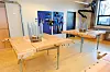 Innvendig er det mye pigmentert furu spilepanel, med gunstig akustisk virkning. Det er også brukt mye massivt tre i tillegg til betong og gips. Himlinger er tresementplater med isolasjon på baksiden for å forsterke «tre-inntrykket».