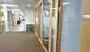 Kontorfløyen er på tre etasjer med en samlet grunnflate på 1.400 kvm. I første etasje finner vi beredskapsavdelingen og verkstedfolk, mens det er ekspedisjon og kontor for ledelse og administrasjon i andre etasje. Her er det også en rekke møterom oppkalt etter navnet på de kommuner som hovedbrannstasjonen har ansvaret for. I tredje etasje i kontorbygget holder det mannskapet til som arbeider for å forebygge brann. Også her er det en del møterom.
