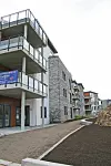 bebyggelse er trukket tilbake for å dempe høyden mot omgivelsene. Uteplasser og utsikt er viktige salgsargumenter for leiligheter som disse. Noen av leilighetene har havutsikt, mens andre kan speide inn mot Mandal sentrum.