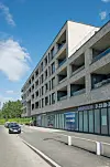 – Bebyggelsen er gitt et urbant uttrykk, og er en introduksjon til hele området. Det har vært en intensjon å skape et skjermet gårdsrom som lukker mot og skjermer for støy fra foranliggende veier og jernbane. De to andre byggene er på fem og fire etasjer og har kontakt med turområdet og gangveien som leder til den kommende parken i utbyggingen. Det vinkelformete bygningsvolumet er utformet med markante åpninger mot de to veiene. I tillegg til å underdele og skalere volumet gir åpningene
