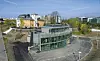 Med ny adresse ligger Snarøyveien 32 ytterst mot strandsonen i øst, skjermet på tre sider av de store naboene Statoil, Aker Hus og Telenor. Men aller nærmest – på en liten kolle i bakkant – troner Villa Birkeli, en 1890-talls fredet murvilla i nyklassisistisk stil. Den står i skarp kontrast til all øvrig bebyggelse på nye Fornebu.