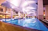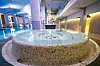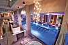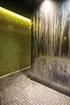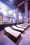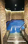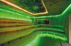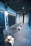 rom, diverse saunaer, japansk hage, fossefall og grotter, lounger og 11 bassenger. Det største bassenget, med vertikale sidedyser for stående boblebad, eller luftrør-senger for liggende boblebad, er på hele 10 x 25 meter.