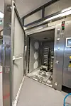 – Det er derfor avgjørende at det ikke uforvarende stikkes eller lages hull i veggene. Det er løst ved at det visse steder, der vi vet at kan komme mye utstyr, er tre lag i veggene. Det er lagt galvaniserte stålplater rett på stenderne, så sementbaserte plater, videre et sjikt med membran og rustfrie plater ytterst. Da kan kjøkkenet feste utstyr i prinsippet hvor de vil fordi det er et stålplatelag helt innerst. Det er akrylbelegg på gulv og på veggene i oppvaskrommet, også. Det gjør det mulig å spyle rett på veggene ved rengjøring, sier Larsen.