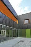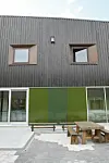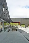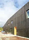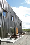 Hovedfunksjonene i bygget i Jarfjord er organisert rundt et indre gårdsrom, og eksteriøret er kledt i mørkt treverk. Bygget går over to plan, og et stort, samlende tak definerer uterommet og knytter anlegget sammen.
