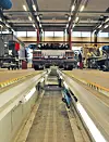 anlegg. Midt i verkstedanlegget er det et eget rom med store tanker som rommer både oljer, kjølevæske og spylervæske. Tankene er tilknyttet i alt fem oljetårn som står ved hver sin servicegrav i verkstedlokalene.