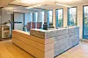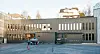 bundet og ligger rundt en asfaltert plass. En del av kontorbygget hviler på synlige V-formede betongsøyler. Under kontorbygget er det et parkeringsanlegg. Bærende konstruksjon er i plasstøpt betong, betongelementer og stål. Takene er isolerte og har folietekking.