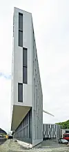 Bygget har t-form. Hjørnet mot sørøst er spisset. Mot nordvest krager bygget sju-åtte meter ut over første etasje.