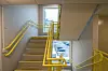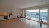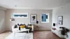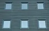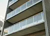 Strekkmetall og glass er brukt i rekkverk på terrasser. Mange av leilighetene har store vindusflater i stuene. De fleste bade-