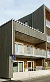 kledning som henspiller på tradisjonell vestnorsk byggetradisjon. Felles utearealer er tilrettelagt mellom bygningsmassen på dekket over andre etasje og i park vest for bygget. I tillegg ligger boligene i umiddelbar nærhet til park og kaipromenade ut mot Bjørnafjorden, dette bidrar til differensierte uteromsituasjoner som stimulerer til allmenn aktivitet både på land og ved sjøen, utdyper Rudjord.