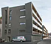 – Bygningsmassen er høyest i sørøst med fem etasjer, mens de resterende to hus har fire etasjer og ligger i retning mot Os sentrum. Bygningene er lukket mot den mer trafikkerte Mobergsbakken bak. Her ligger trapp, heis og gangarealer frem til leilighetene. Byggene åpner seg opp mot sjøen med fritt utsyn gjennom store glassflater og balkonger med utsikt over Bjørnafjorden og Folgefonna i sørøst. Alle balkongene har skillevegger som sikrer gode private soner på uteplassen, sier Rudjord.
