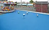 – På vestsiden av senteret er det amfi med springvann, plener, to store lekeplasser, ballbinge, sittegrupper, uteservering, beplantning og en 40 kvadratmeters storskjerm. På østsiden av senteret er det bygget trapp og amfi av granitt, forteller Nyland.