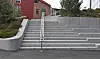 Utenfor de to nye inngangene er det opparbeidet omfattende uteområder.