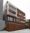De 32 selveierleilighetene, som er fordelt over fire bygg, knyttes sammen av ett felles trappe- og heishus av glass.