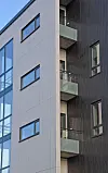 – Taket ble tekket straks betongarbeidene var fullført, noe som reduserte faren for fukt i konstruksjonen, sier Arvid Johnsen. Byggene har aluminiumsbelagte trevinduer. Det er solreflekterende glass der det er behov for det og selvrensende glass der det er vanskelig å komme til for å vaske. Både leiligheter, fellesarealer og parkeringsanlegg er sprinklet. Prosjektet har søppelsug-anlegg med fire fraksjoner.